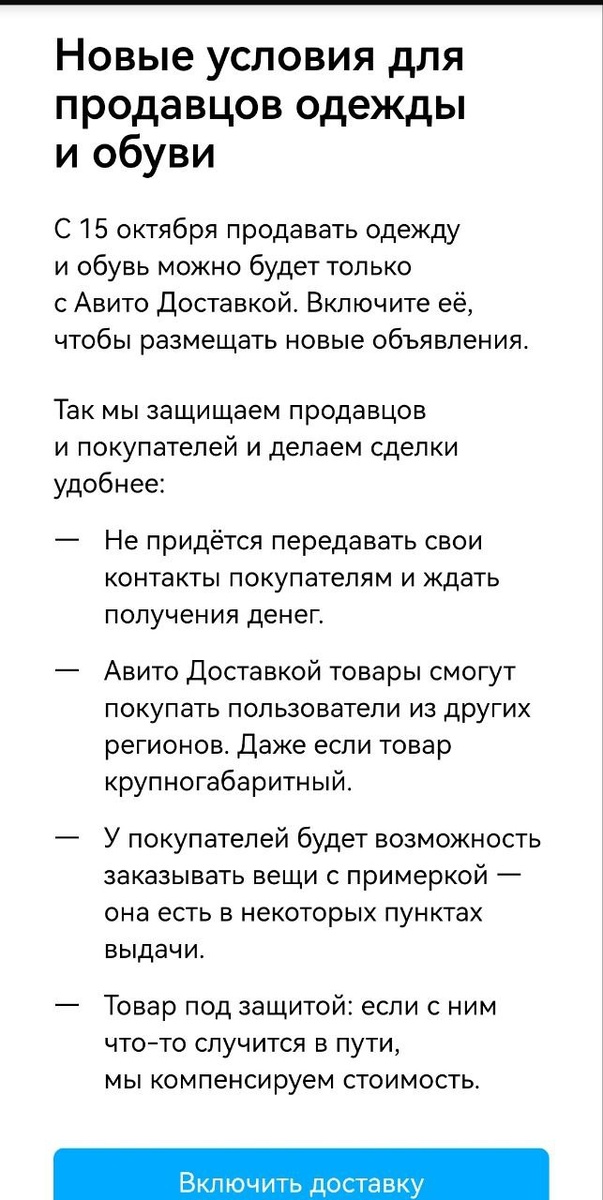 Самовывоз все? На Авито отменяют самовывоз в категории «Одежда и обувь» с 15 октября