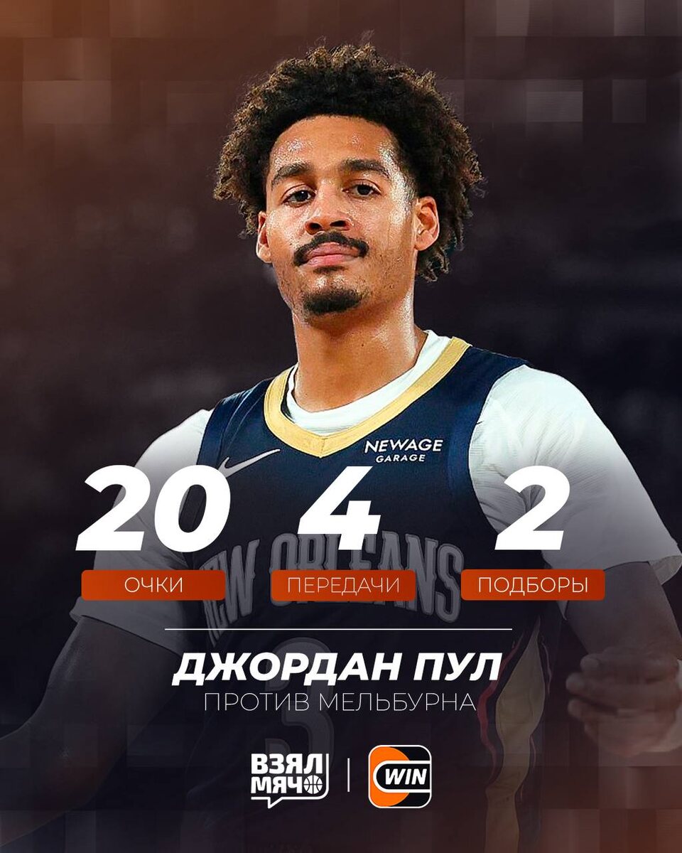 🏝 Вечеринка у бассейна только начинается? Свой дебютный, хоть и предсезонный матч за «Пеликанс», Джордан Пул провел уверенно, допустив лишь одну потерю. За 17 минут на площадке он попал 3 из 7 с игры, и набрал 20 очков благодаря 100% реализации со штрафной. 😁 — против «Мельбурна» не считается 🏀 ПОДПИШИСЬ — ЗДЕСЬ ЖИВЁТ БАСКЕТБОЛ!
