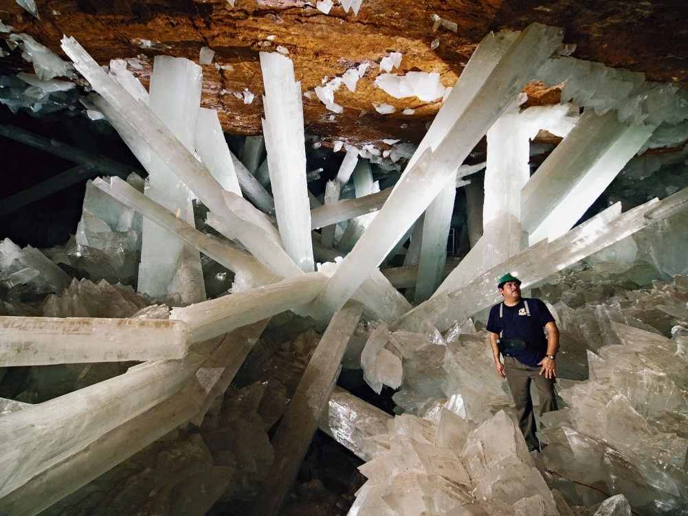 Перед ними была пещера. Не просто пещера — подземный храм из гигантских белоснежных кристаллов. Прозрачных, как стекло. Огромных, как деревья. Некоторые достигали 11 метров в длину — это высота трехэтажного дома. Весили по 55 тонн — как десяток слонов. Кристаллы торчали из стен, пола, потолка, пересекали пространство в разных направлениях, словно мечи великанов, замершие в вечной битве.