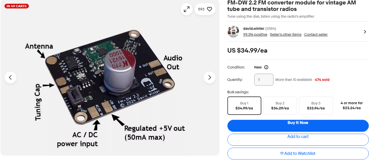 Продавца, как я понял зовут David Winter и он говорит что это модуль FM-DW 2.2 для переделки винтажных радиоприемников на диапазон FM