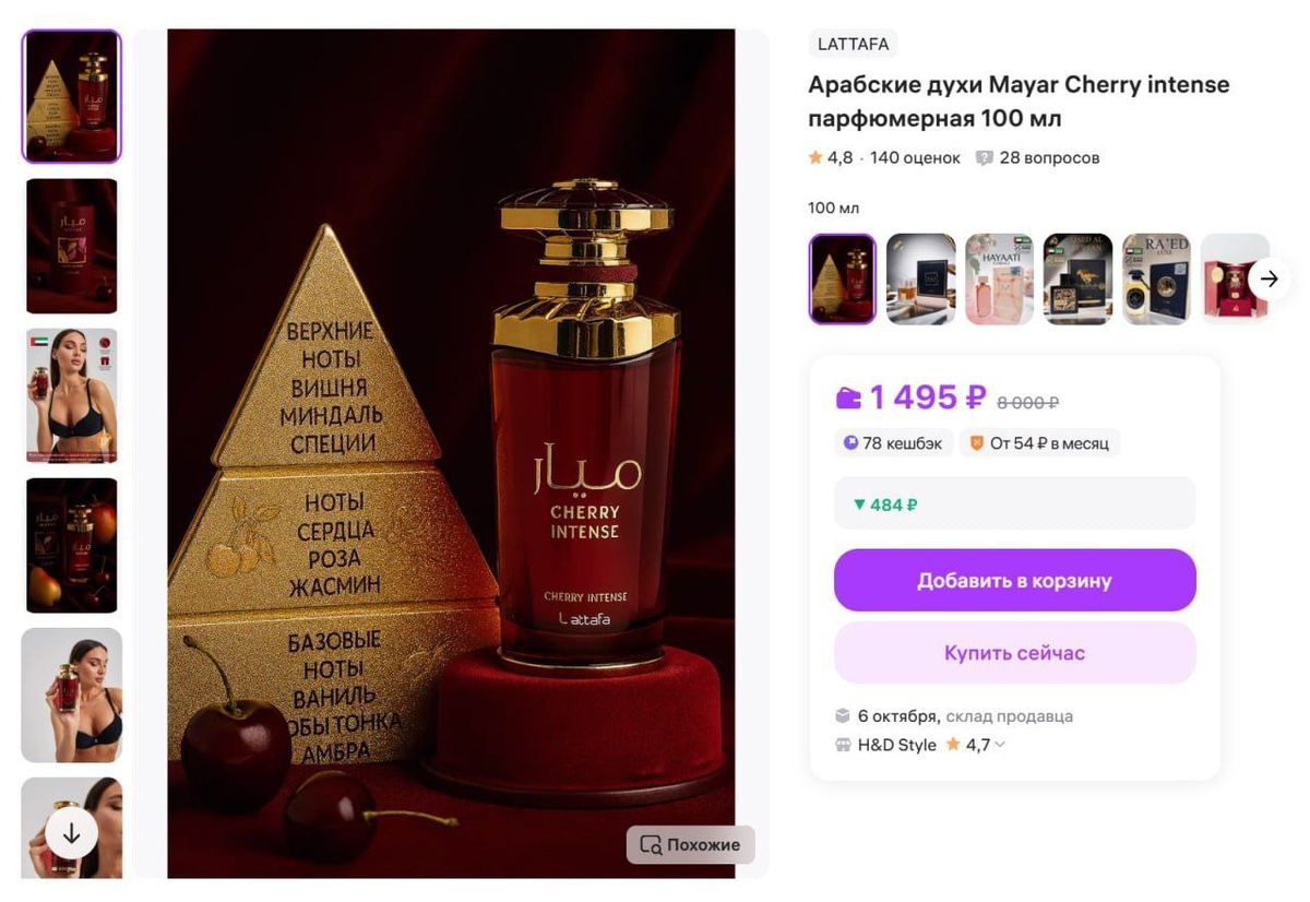 Арабские духи Mayar Cherry intense парфюмерная 100 мл за 1495₽