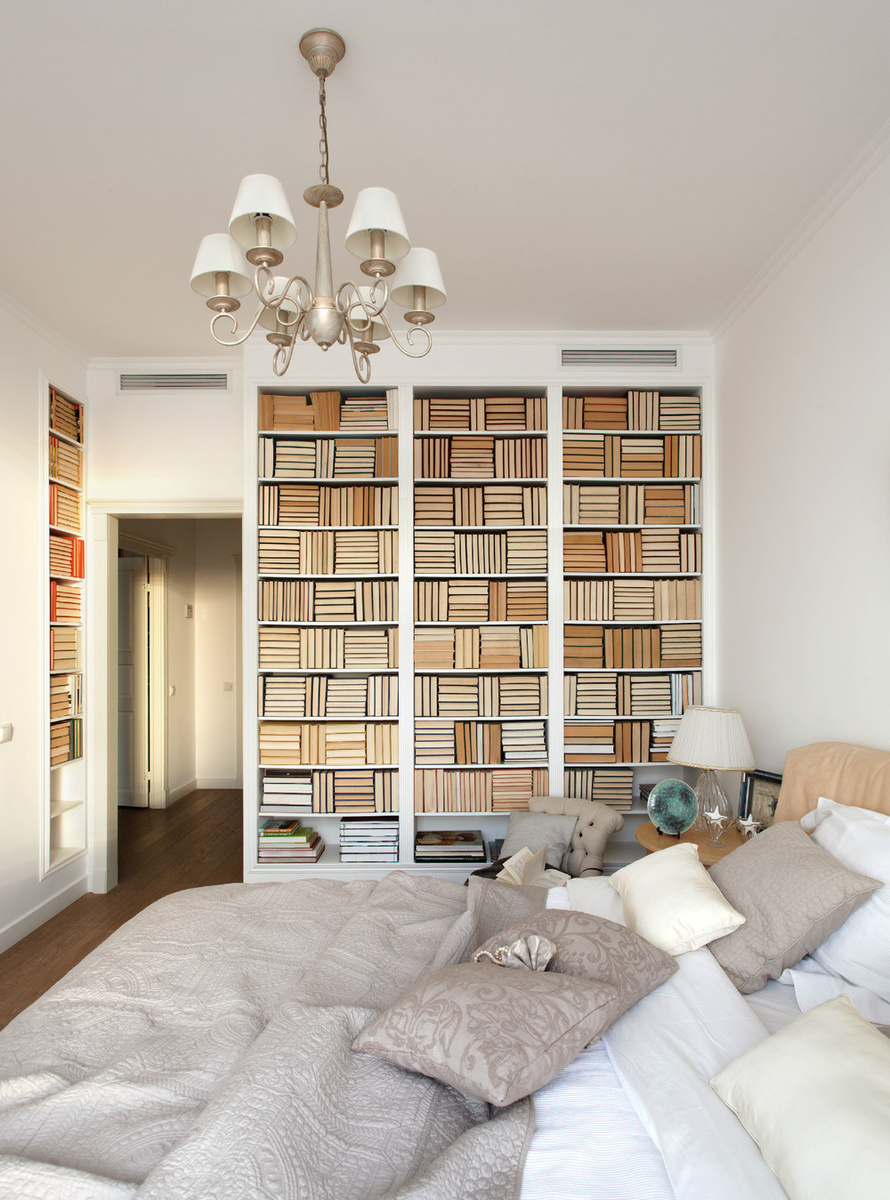 Стеллажи для книг. Есть ли сейчас запрос на домашние библиотеки? Читают ли сейчас? Или нынче дом без книги-это норма? Или наоборот, набирающая популярность опция? Давайте разбираться. 1.Книги как элемент декора. Да, это так. • Книжные полки создают визуальный акцент в комнате, на них фокусируется взгляды. А правильная подсветка превращает стеллаж в арт-объект. • Полки можно выделиться цветом или текстурой. Сочетание книг, декоративных элементов, растений-создаст акценты в интерьере. А вот на примере спальни из проекта Ольги Черненко можно посмотреть, как это все работает. В своем проекте Ольга развернула книги корешками во внутрь, создала цветовой акцент. Хорош также и ритмический рисунок. Волна хейта обрушилась на нее, люди со всех сторон: «А как книгу распознать?Неудобно будет пользоваться и т.д.» Вы знаете, каждый выбирает сам, что для него лучше. Мне идея понравилась. И хочу сказать, что сама я планирую обернуть все книги у себя дома в одну бумагу. У моего прадеда была обширная би