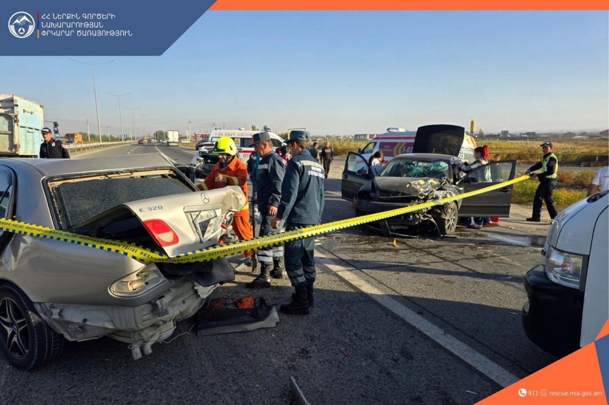 5 октября в 08:31 в Центр управления кризисными ситуациями Араратского регионального спасательного управления поступило сообщение о том, что на трассе Ереван-Ерасх, в районе Масисского моста, произошло дорожно-транспортное происшествие. Есть пострадавшие. На место выехал боевой расчет пожарно-спасательного отряда областного управления Спасательной службы МВД РА. Выяснилось, что автомобили Kia, Mercedes-Benz и Skoda столкнулись на 13-м километре трассы Ереван-Ерасх. По данным источника, четверо пассажиров госпитализированы в медпункт. Спасатели отключили электропитание автомобилей, перекрыли вентили газовых баллонов и на носилках доставили водителя Skoda в машину скорой помощи. Пострадавший госпитализирован в медцентр.