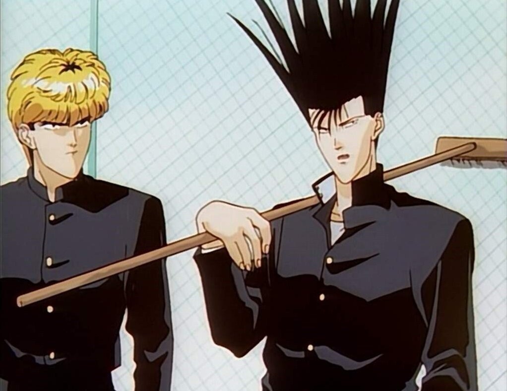 Жанр: приключения, комедия Оценка по ШЦ: 8 из 10 Синопсис Такаши Мицухаши — обычный школьник, который, однако, устал от своей обычности и непопулярности и дозрел до перемен. Шанс выпадает ему вместе с переездом. Новый дом, а значит новая школа, новые знакомства и возможность преподнести себя в свежем имидже. А что может быть лучше, чем образ отпетого хулигана? Внимание общественности обеспечено! И всё бы шло по плану, если бы не тот факт, что гениальные идеи летают в воздухе. И надо же такому случиться, что та же мысль приходит в голову еще одному новичку в классе — Шинджи Ито, такому же переведенному студенту, решившему изображать «бандюгана». Двое новоявленных хулиганов сразу же ссорятся, не стерпев конкуренции. К тому же оказывается, что характер у них прямо противоположный: Ито блюдет кодекс чести и обладает чувством справедливости, а прохвост Мицухаши не чурается грязных приемчиков, так как разумно полагает, что в драке главное — победа. Начав с взаимных претензий, после пары совм