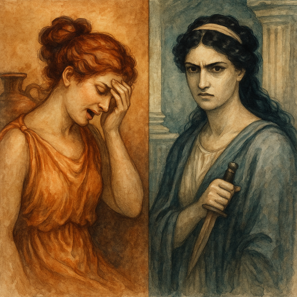 Чтобы показать два полюса реакции на предательство и боль, не нужны длинные описания. Достаточно вспомнить две античные драмы, где главные героини — Федра и Медея — совершают поступки, находясь на разных концах шкалы эмоций.