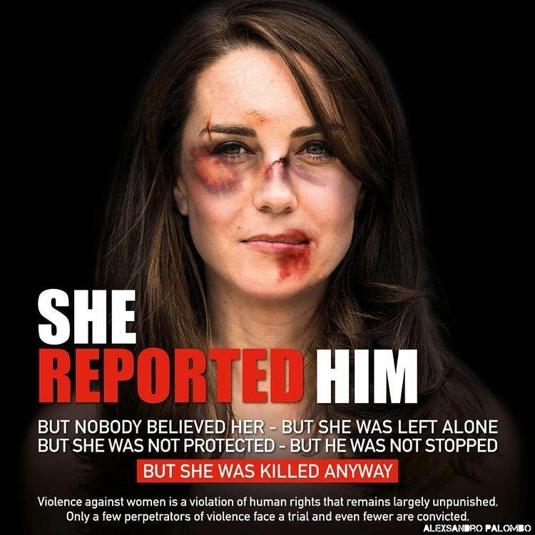 Королевские поклонники в шоке: на улицах Милана и испанского города Лос-Алькасарс появились плакаты, изображающие Кейт Миддлтон со следами побоев. На фотографии герцогиня Кембриджская запечатлена с синяками, ссадинами и опухшими губами — словно стала жертвой насилия. Кампания, запущенная под названием “She reported him” («Она сообщала о нем»), вызвала бурю эмоций и вопросов.