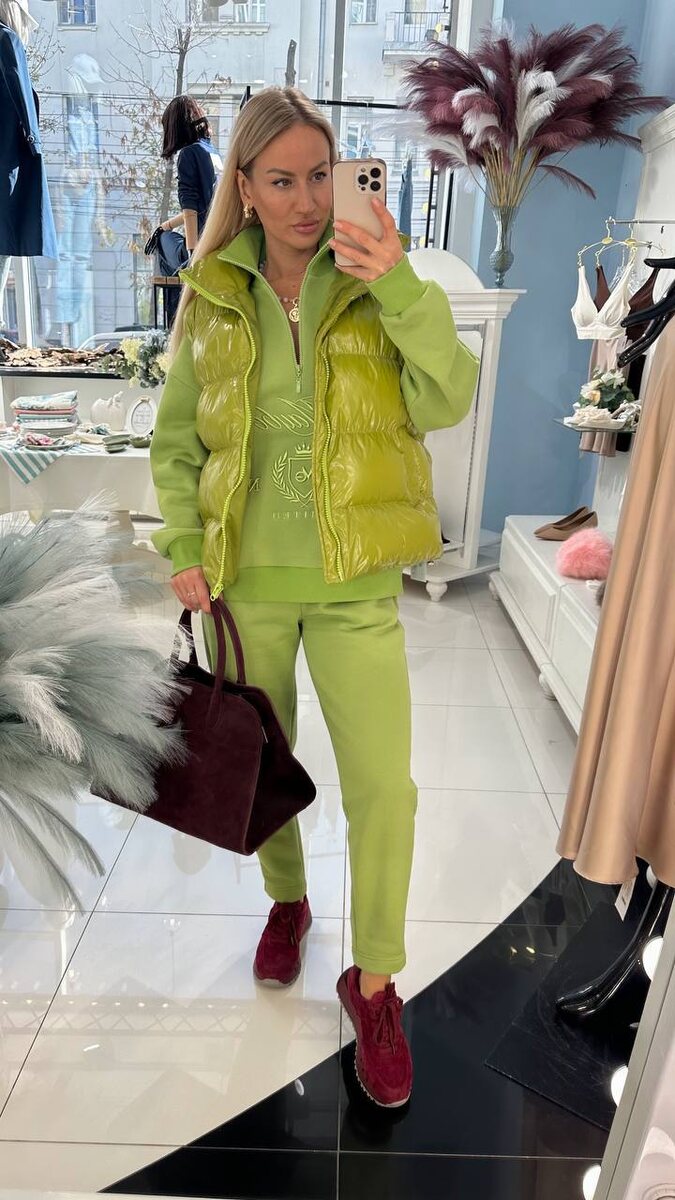 Гармония цвета Смелое и стильное цветовое сочетание в комфортном образе от стилиста Дома Моды Елены 💚 Стоимость: 18.000₽ спортивный костюм «Орион» 16.000₽ жилет «Льюис» 22.000₽ кроссовки из натуральной замши Оформить заказ Для заказа перейдите в официальный чат с онлайн-менеджером 📲