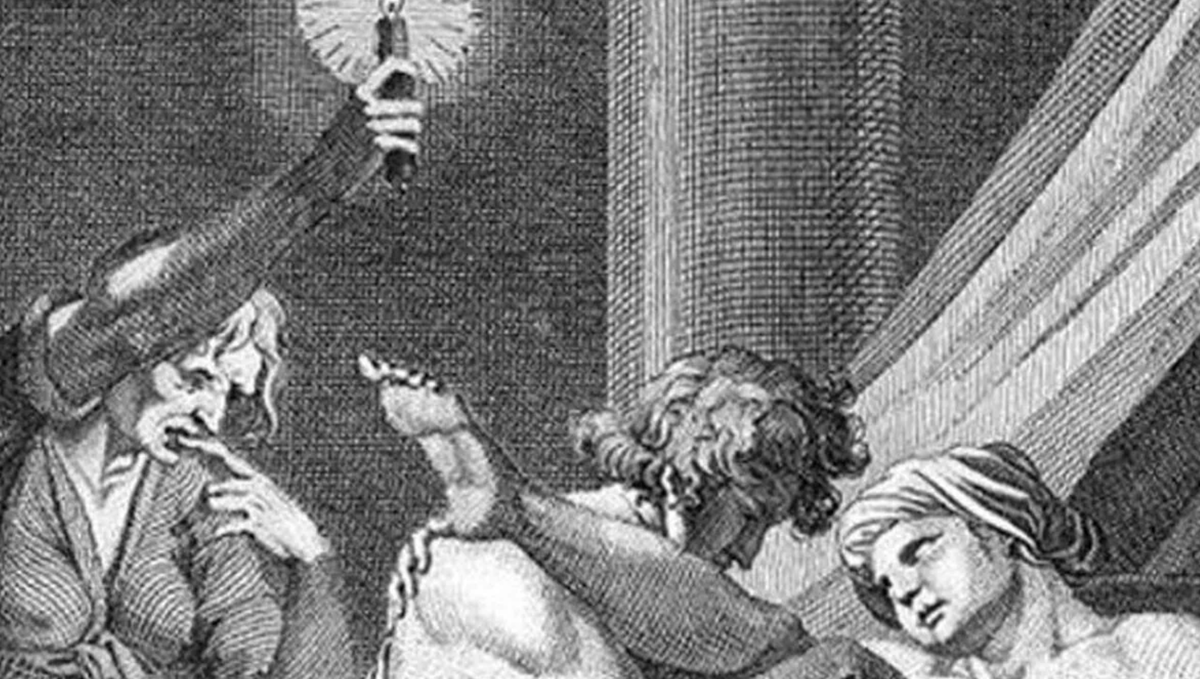 Сваха или другой доверенный человек заглядывал в комнату со свечой в руках, чтобы убедиться: на белье есть следы крови. Это и есть буквальное "держание свечки" - присутствие при интимном акте с источником света.