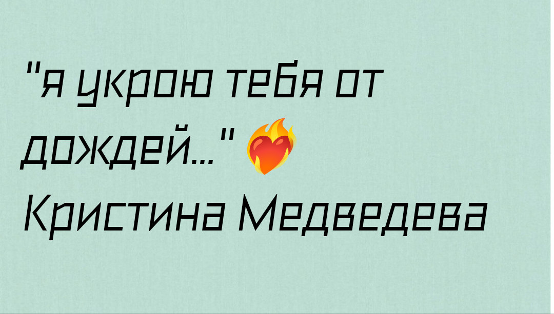 Я укрою тебя от дождей И от самых сильных морозов. Навсегда будешь только моей Несмотря на ненастья и грозы. Я укрою тебя от ветров Подарю тебе тёплое лето. Я на всё для тебя готов Ты мой мир и моя планета.. Моё солнце и мой родник И единственный лучик света. Самый маленький материк Моя маленькая Джульетта. Кристина Медведева