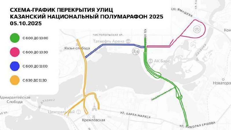 Берите во внимание 🙏🏼 ❌Перекрытия дорог❌ 4 октября с 16:00 до 11:30 5 октября 📍Кремлевская набережная (ограничение парковки) 5 октября с 06:00 до 10:00 📍 Улица Вишневского (дорожные участки в направлении моста "Миллениум") 📍 Мост Миллениум, улица Подлужная 📍 Улица Фатыха Амирхана (участки около моста и тоннеля) 5 октября с 06:00 до 10:30 📍 Улица Сибгата Хакима (до Чистопольской) 📍 Чистопольское кольцо (от съезда на Сибгата Хакима до съезда на улицу Чистопольскую) 📍 Улица Чистопольская (подъезды к "Ак Барс Арене") 📍 Дороги вокруг стадиона "Ак Барс Арена" 5 октября с 06:00 до 11:00 📍 Улица Сибгата Хакима (от Декабристов до Амирхана) 5 октября с 06:30 до 11:30 📍 Улица Декабристов 📍 Кремлевская дамба 📍 Улица Пролетарская 📍 Подъем с Батурина на дамбу и съезды 📍 Площадь Тысячелетия и прилегающие дороги Больше информации в нашей группе, переходите