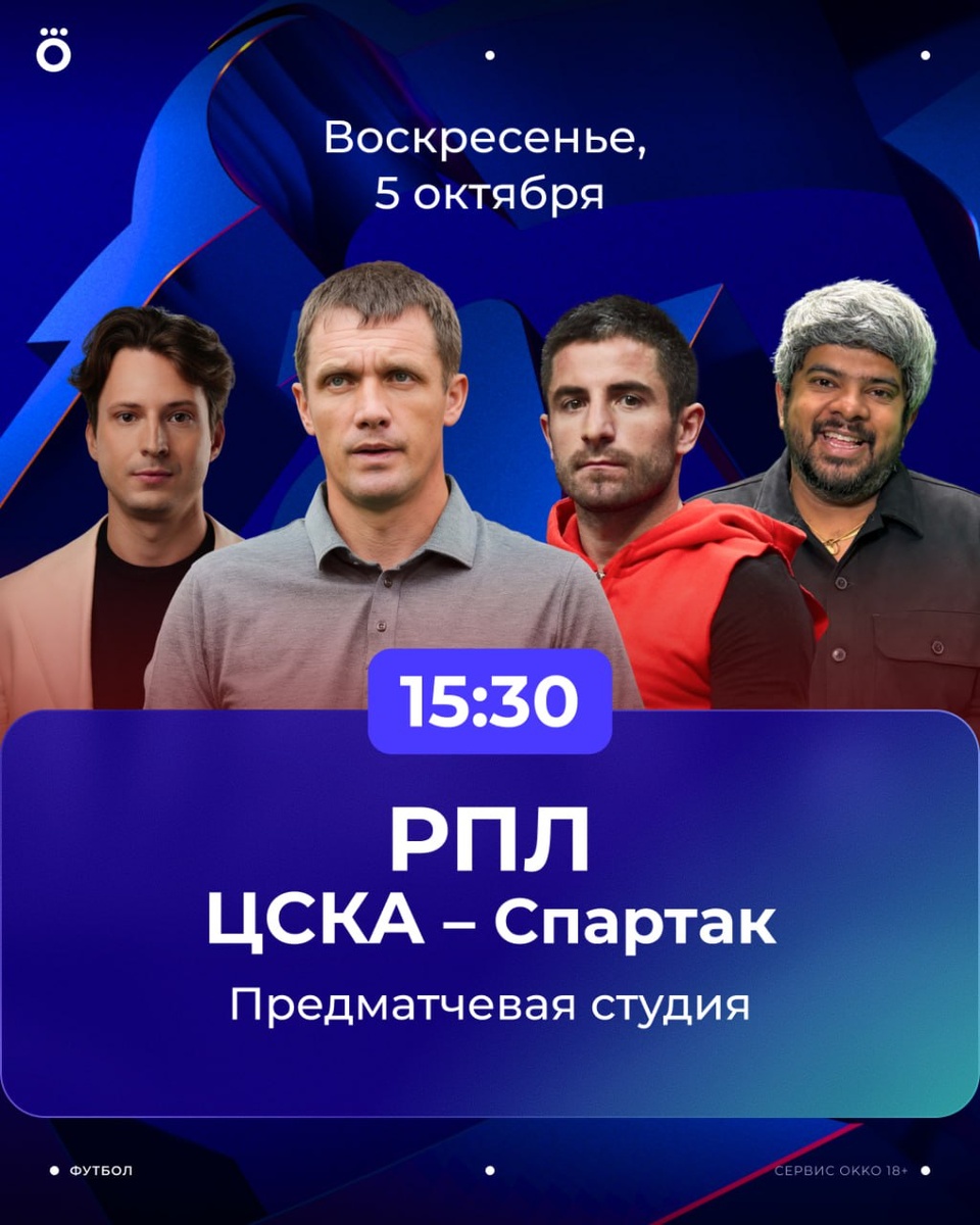 Матч тура в РПЛ. Собираемся смотреть московское дерби ⚽⚽ В студии — Алхазов, Гончаренко, Тошич и Васант. Подключайся в 15:30 в сервисе Okko, на YouTube или в VK Видео 🇷🇺