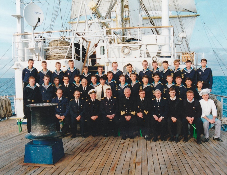 На фото, сделанном на борту парусника МИР – курсанты Макаровки вместе со своими наставниками во время прохождения плавпрактики. Снимок датируется 2001 годом. Некоторые из тех курсантов – сейчас занимают должности комсостава на флоте.