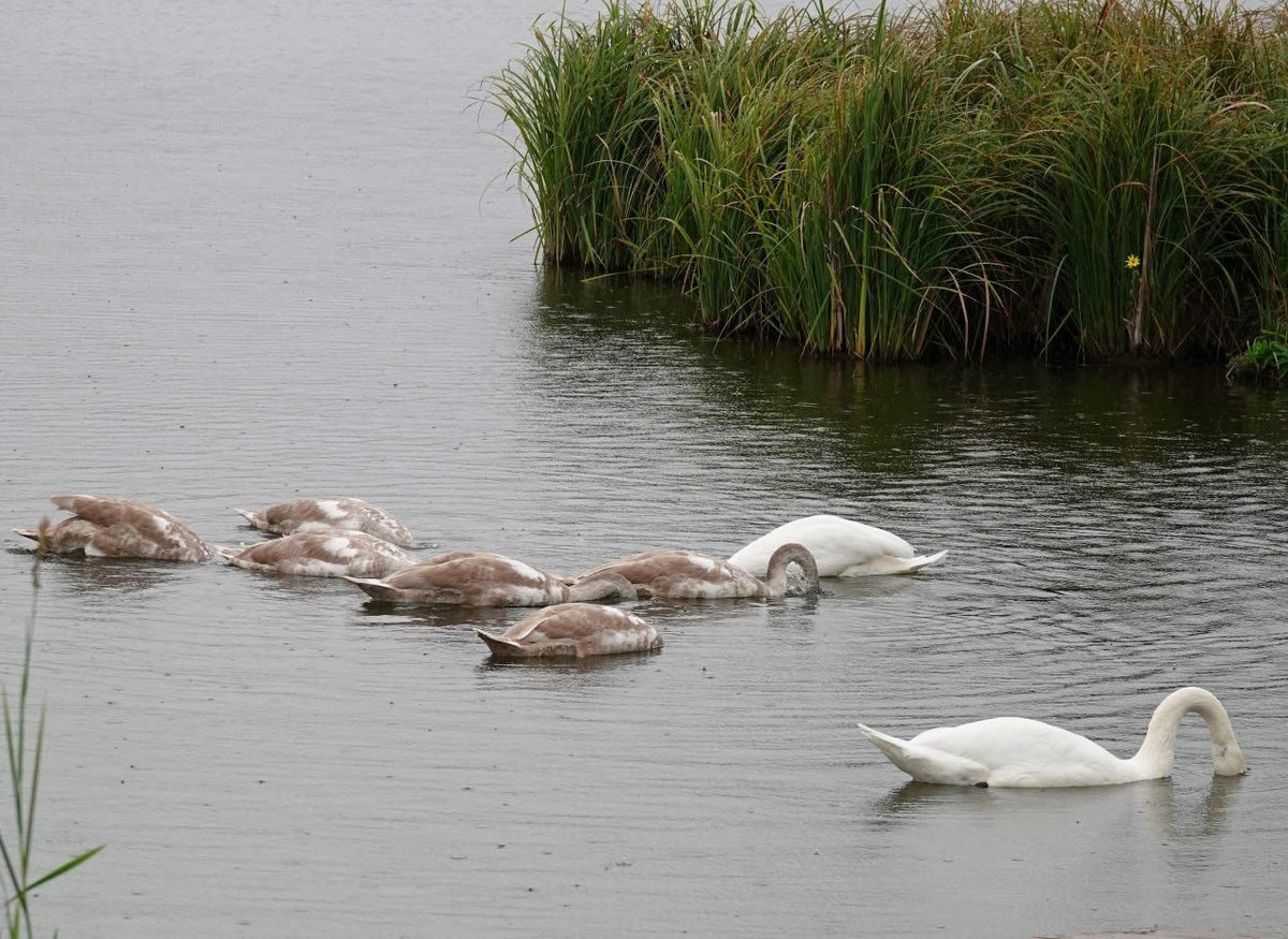 В курском водоёме обосновалась семья лебедей-шипунов В этом году птицы обзавелись потомством — на свет появилось шесть птенцов. Очевидцам удалось вблизи наблюдать, как взрослые лебеди кормят своё многочисленное семейство на мелководье. Фото: Ирина Захарьина / Птицы города Курска