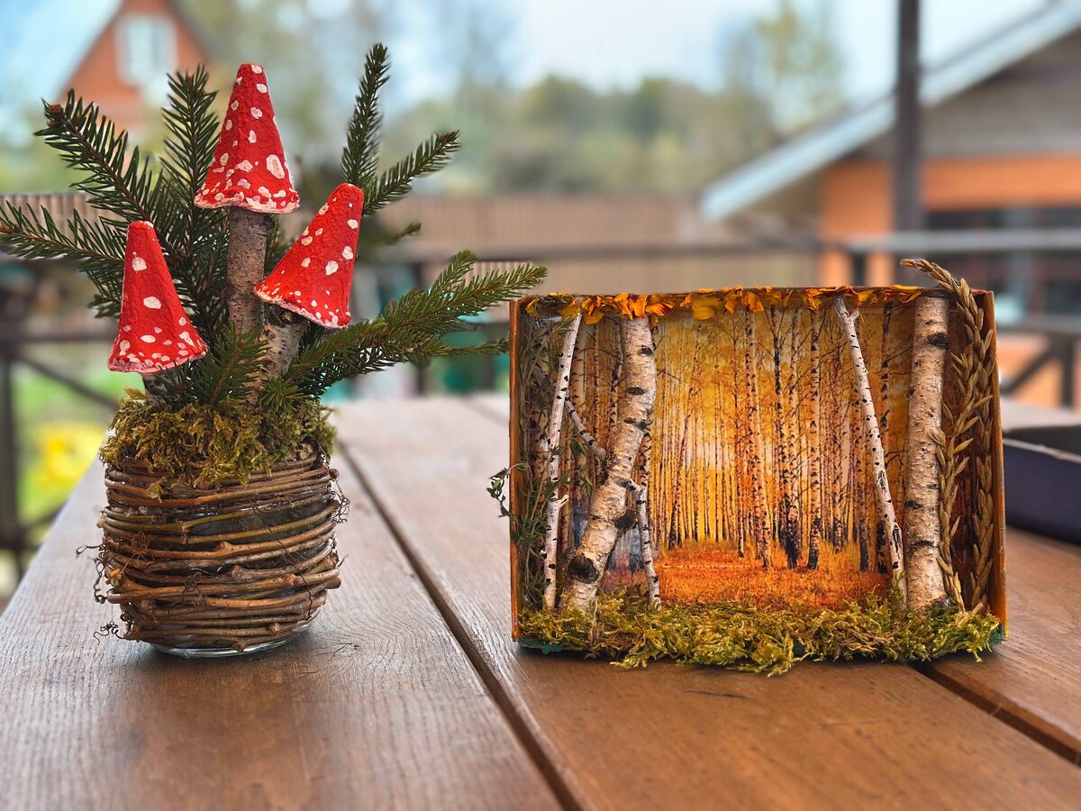 Сезон осенних поделок в разгаре 🍄 Теперь с саду отдуваюсь за двоих детей 🙈 Считаю, что вышло неплохо 👌 Клеевой пистолет и идеи из интернета творят чудеса. Сын тоже помогал 💪 Для мухоморов использовала лоток от яиц. А картинку осенней березовой рощи для печати оставлю в комментариях. ®️ Еще жду, когда придет фигурка лисенка с WB. Лесу нужен житель) Делитесь своим творчеством. Даже если это ваша совместная аппликация кленовых листов с ребенком 🫶 #полезно