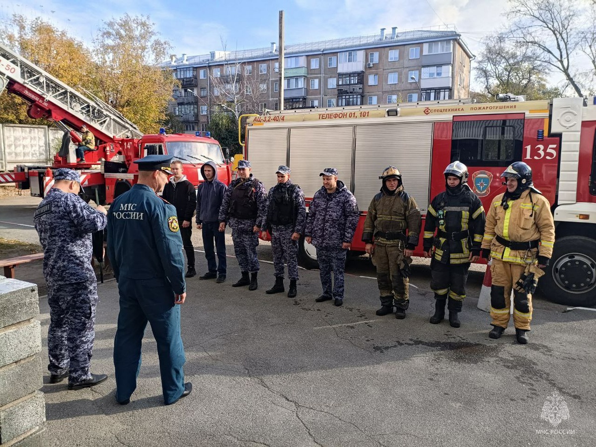 🚒🚓Росгвардия и ГУ МЧС России по Алтайскому краю отработали слаженность действий при пожаре в многоэтажке