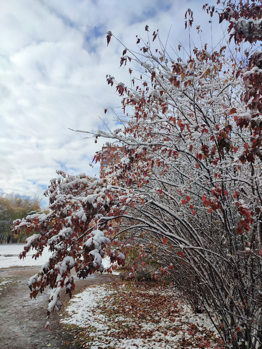 Ну, так то я хотела на блошку ехать... В субботу было без вариантов, дожде-снег шел больше суток непрерывно. А вот в воскресенье пообещали без осадков. И даже почти угадали ☺️ Думаю, съезжу, посмотрю, сколько продавцов вышли на работу в экстремальных условиях. А в окно утром выглядываю, а там... Здравствуй, здравствуй, Новый Год! 🤦 И что? И всё? И лето кончилось, и сразу и осень?! Но красиво 😼 Никуда я не поехала, зато пошла ☺️ Примерно в пяти минутах ходьбы от дома находится Инюшинский бор. А там тоже такая красота, как бы не лучше 🥳 Причем градусов около нуля с переходом в легкий плюс, то есть снег этот на глазах тает. Надо спешить, чтобы красота не обсыпалась! И я успела 👍 В бору есть и березовая роща и и смешанный лес и сосновый бор. На любой вкус! Народ уже решил на лыжах кататься 😄 "Но то ли лыжи не едут..." Реально поторопились, и снега мало и он липко-мокрый 🤷 Вот такая сказочная тайга у нас в шаговой доступности есть 🤗 И пока погода позволяет (в смысле зима то
