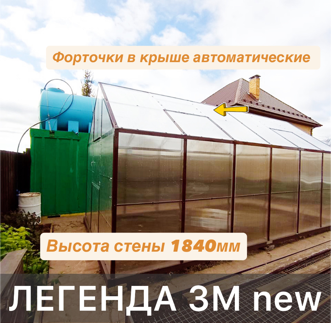 ВЫСОКАЯ ПРОСТОРНАЯ ТЕПЛИЦА. ЛЕГЕНДА 3М new. Те кто мечтал о теплице, пора превратить свою мечту в реальность! Высокая теплица с усиленными фермами арками и торцами Ширина 3 метра Длина кратна 1 метр: 2-3-4-5-6-7 и т.д. метров Высота стен 1,84 метра Высота в коньке 2,92 метра Каркас изготовлен из оцинкованной профильной трубы трех видов: 20/40 и 20/20/