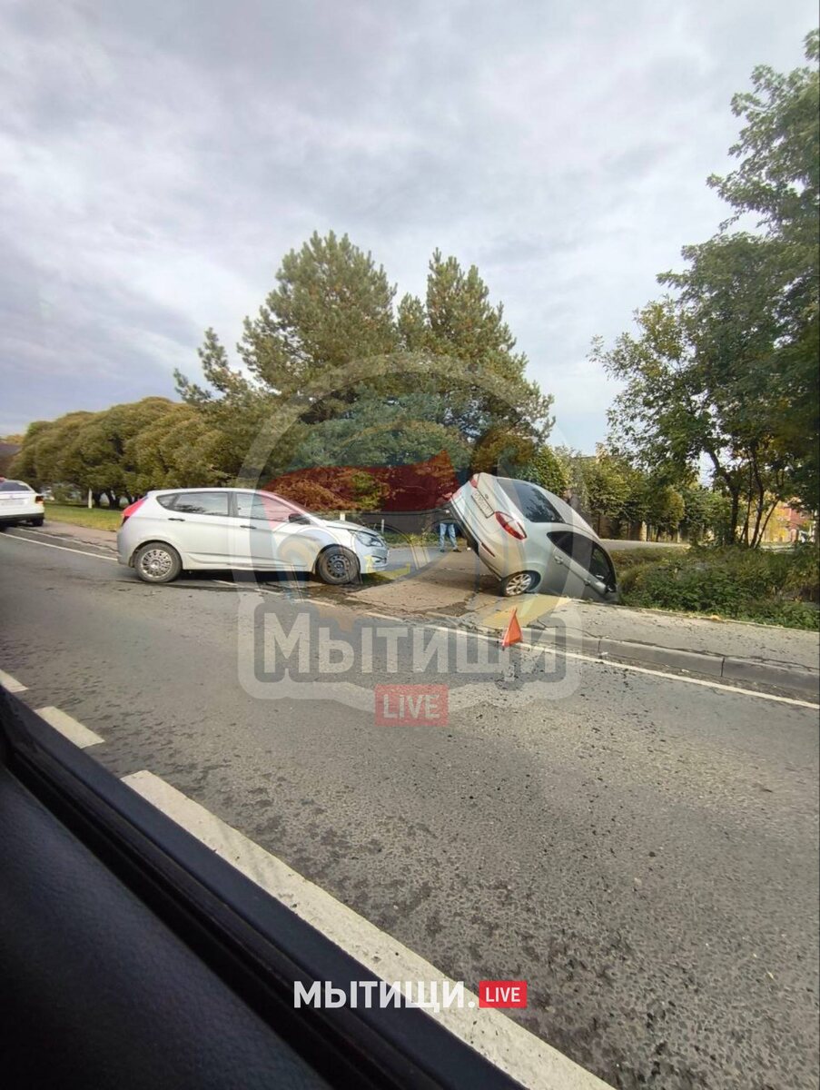 ➡️В Мытищах на улице Совхозная произошло ДТП: столкнулись два автомобиля, после чего одну из машин отбросило в канаву — она застряла носом вниз у обочины.
