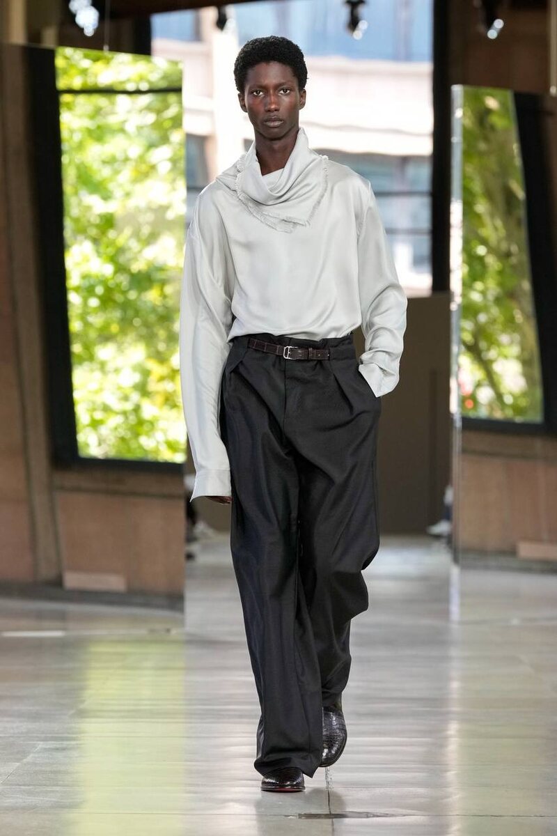 Hermès представил новую летнюю коллекцию мужской одежды, объединяющую в себе удобство и универсальность. В центре внимания дизайнеров — комфорт и функциональность, которые гармонично сочетаются с фирменной утонченностью бренда. Среди верхней одежды выделяются минималистичные модели: кожаные куртки прямого силуэта, стильные жилеты и пиджаки, четко вырисовывающие фигуру. Дополняет образы яркий элемент — шейные платки, придающие ансамблям особую изысканность. Основу гардероба составляют свободные атласные рубашки, просторные футболки, обеспечивающие свободу движений, а также легкие сетчатые топы. Брюки средней посадки оснащены тонкими ремешками, придавая образу завершенность. Обувная линейка выдержана в классическом стиле, включающая удобные сандалии и элегантные туфли. Вместительные и практичные сумки идеально подходят как для повседневного использования, так и для отдыха в летний период.
