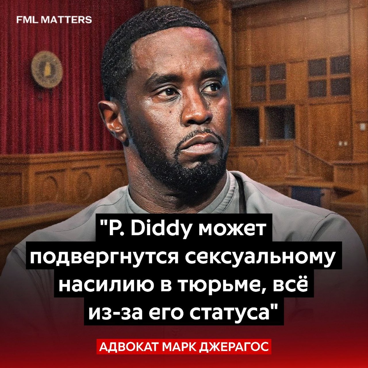 В ответ на пост ❌ P. DIDDY МОЖЕТ СТАТЬ ЖЕРТВОЙ НАСИЛИЯ В ТЮРЬМЕ! Его адвокат Марк Джерагос рассказал, что известность артиста делает его мишенью для насилия. По словам Джерагоса, уже в пятницу команда Дидди узнала, что кто-то в тюрьме собирался напасть на него «Это возможно. Его статус привлекает многих. Они должны поместить его куда-нибудь, где смогут за ним смотреть, но мы знаем, как это бывает…» — сказал адвокат В понедельник судья даст рекомендации, где именно Дидди будет отбывать срок, но окончательное решение примут федеральные власти 💀 FML MATTERS
