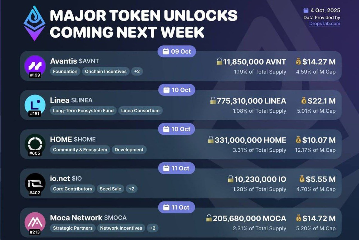 DropsTab: крупнейшие разблокировки в токенах на этой неделе