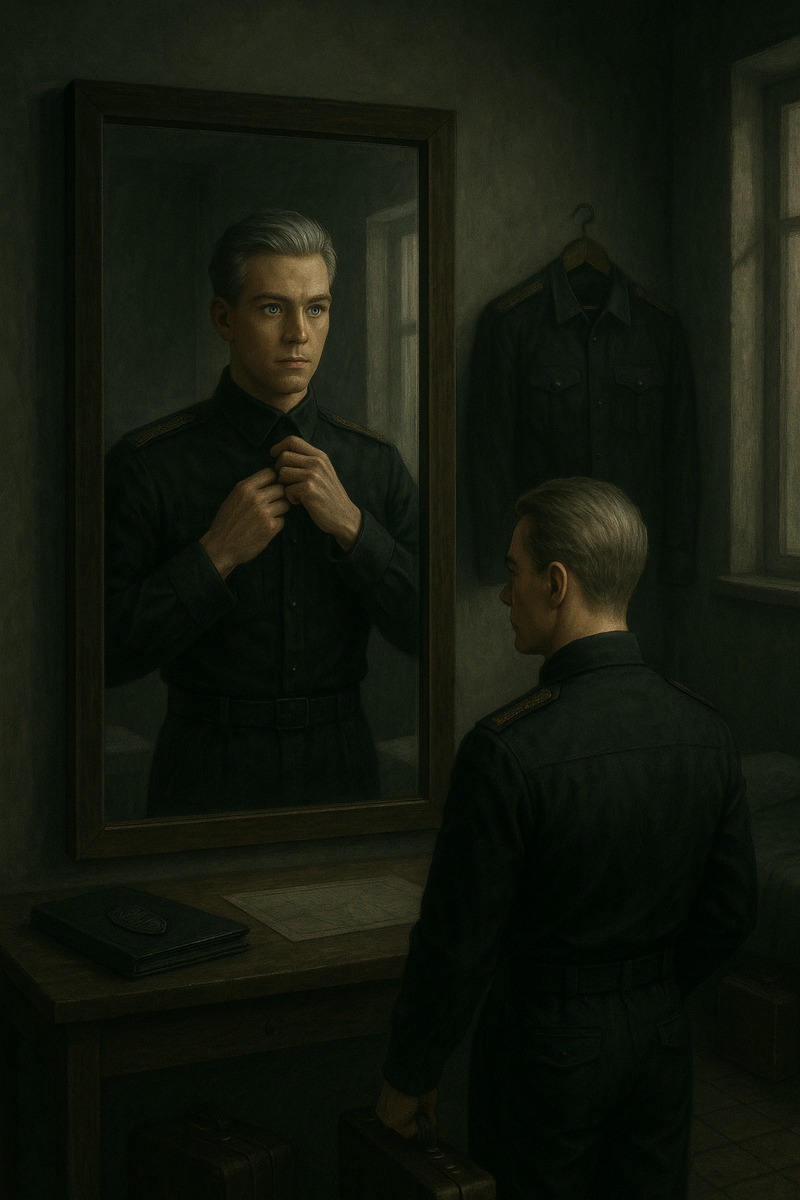 «Камни древних миров. Книга первая: Светлый мальчик» Глава 4. Выйдя из резиденции Владыки, Коэн подозвал своего помощника и коротко отдал несколько распоряжений. Его голос заметно изменился: стал звонким, уверенным, властным. Лицо, наоборот, смягчилось, и в глазах вспыхнул озорной огонёк - словно это был уже совсем другой человек. Заскочив домой, он быстро переоделся в чёрную, аскетичную форму, чей крой был предельно функционален и был похож на военно-полевой. Ткань лежала безупречно, подчеркивая строгость силуэта. Единственными акцентами, нарушающими почти монашескую простоту, были изящный золотой узор на погонах и аккуратная планка с орденскими колодками на груди. Собрав вещи Коэн отправился на аэродром. Там его уже ждали пять офицеров Сыска - крупные, широкоплечие, удивительно похожие друг на друга, словно братья. Забрав у Коэна вещи, они без лишних слов двинулись к взлётной площадке. Подойдя к Тёмному Орлу, Коэн с тоской задержал взгляд на стоявшем рядом дирижабле - медленном, но