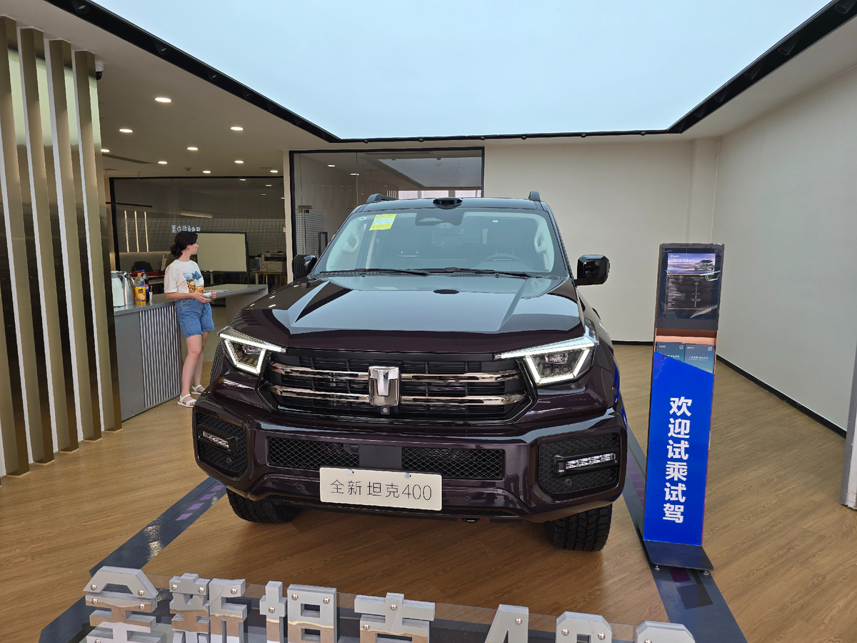 На витрине стоял красавец TANK 400 Hi4-T, гибридный внедорожник, который вживую выглядит так, будто сейчас съест твой асфальт на завтрак. Мощный, квадратный, с характером — сразу видно, что машина не для слабонервных. 💪