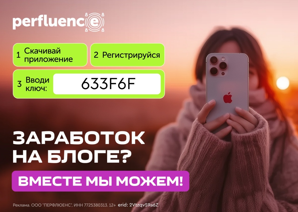 Давно пытаюсь хоть как-то повысить свой материальный уровень , что для человека живущего на пенсию довольно проблематично . Одно время немного выручали Ютуб и Дзен, но теперь и там и там абсолютно "по-нулям". Недавно открыл для себя новое направление - "Perfluence". Оказывается , чтобы зарабатывать на рекламе нужно совсем немного... Если у вас канал на одной из разрешенных платформ и не менее 500 подписчиков, можно попытаться... Нужна только одна платформа. Чтобы монетизировать блог нужна только одна платформа и несколько минут времени. А ещё всего 500 подписчиков! 1️⃣Скачай приложение по ссылке 2️⃣Введи секретный ключ 633F6F 3️⃣Выбери проекты для сотрудничества 4️⃣Размести рекламу в блоге и начни зарабатывать Начинай именно сейчас, чтобы не упустить такую возможность! Реклама. ООО "ПЕРФЛЮЕНС", ИНН 7725380313. 12+ erid: 2VtzqvS9a6Z