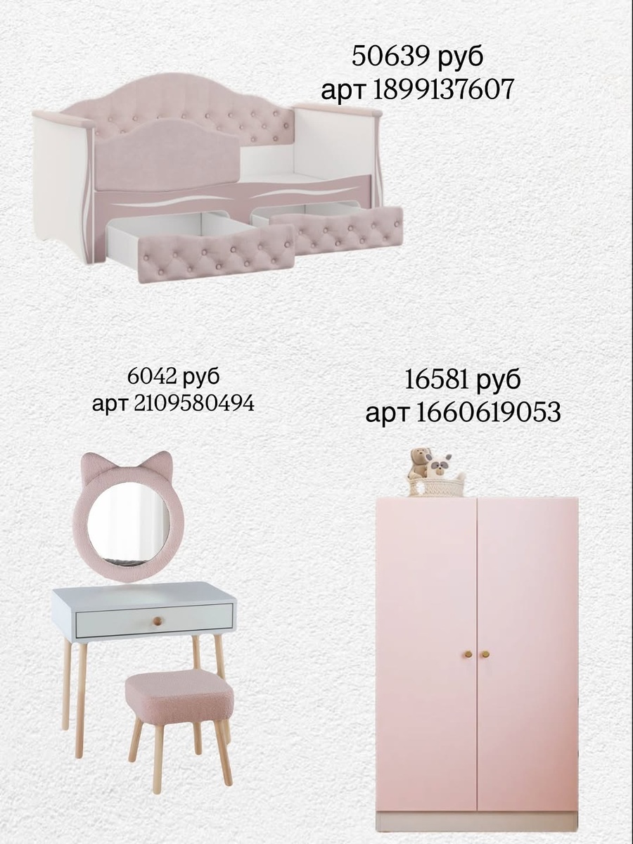 Нежная пудровая гамма, мягкие формы, тактильные ткани и функциональные детали — такая детская и радует глаз, и работает на ежедневный порядок. Я собрала продуманный комплект мебели и декора, который легко сочетать между собой. Все позиции — с артикулами и лаконичными рекомендациями стилиста.