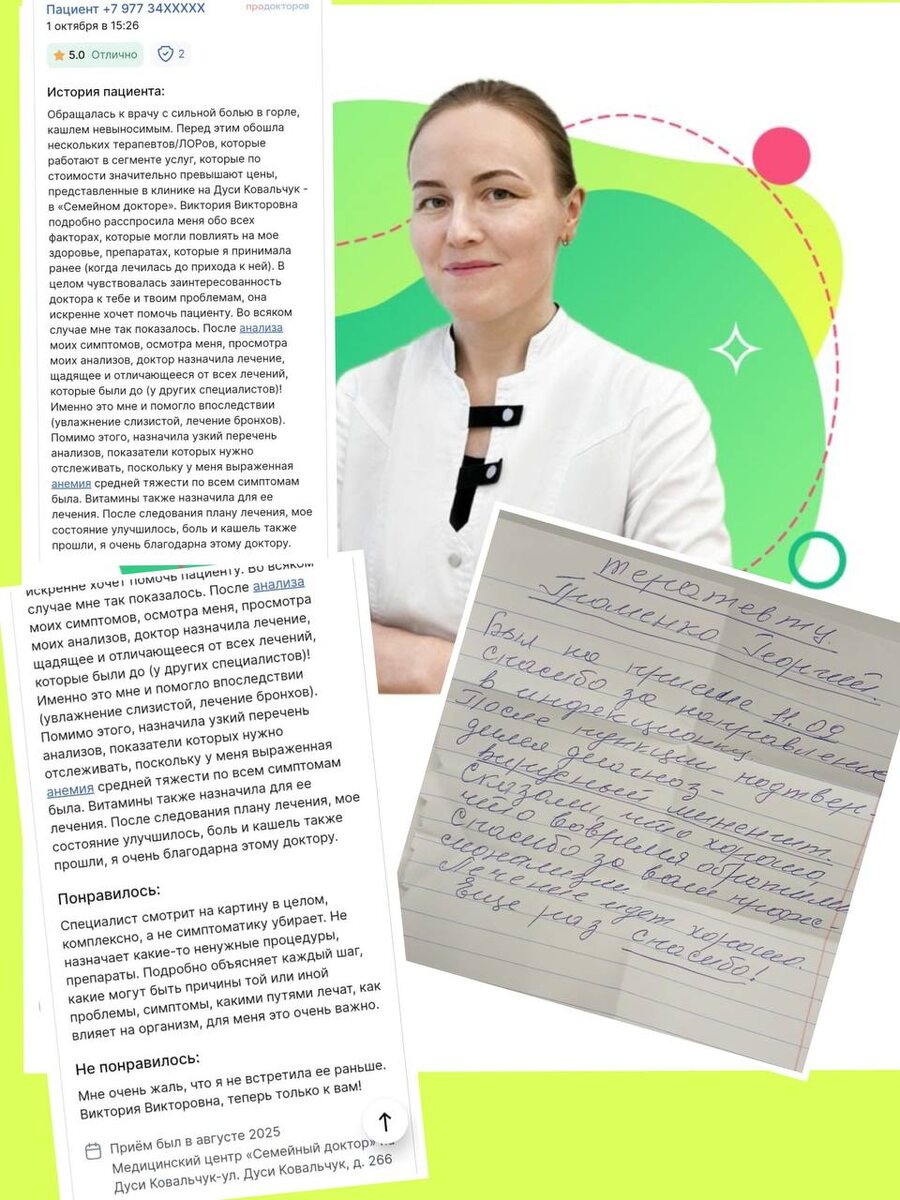 Кашперская Виктория Викторовна, стаж более 8 лет. Уважаемые пациенты, те, кто ищет не просто врача, а решение своих проблем со здоровьем. В современном мире, где время — самый ценный ресурс, а здоровье — основа всего, выбор грамотного специалиста становится стратегическим решением. Особенно когда речь идет о таких тонких и взаимосвязанных сферах, как терапия и эндокринология. Позвольте представить вам врача, который сочетает в себе обе эти экспертизы, — Викторию Викторовну Кашперскую. Это не просто еще один врач в списке. Это специалист, чей подход уже оценили десятки пациентов, и мы имеем прямое тому подтверждение. Только за последнее время Виктория Викторовна получила два новых отличных отзыва. Здоровье — лучшая инвестиция в ваше спокойствие. Почему выбор в пользу Виктории Викторовны — это осознанное решение о заботе о здоровье? 1. Двойная экспертиза: терапия + эндокринология. Вы получаете не разрозненные консультации, а целостную картину. Многие симптомы (усталость, колебания