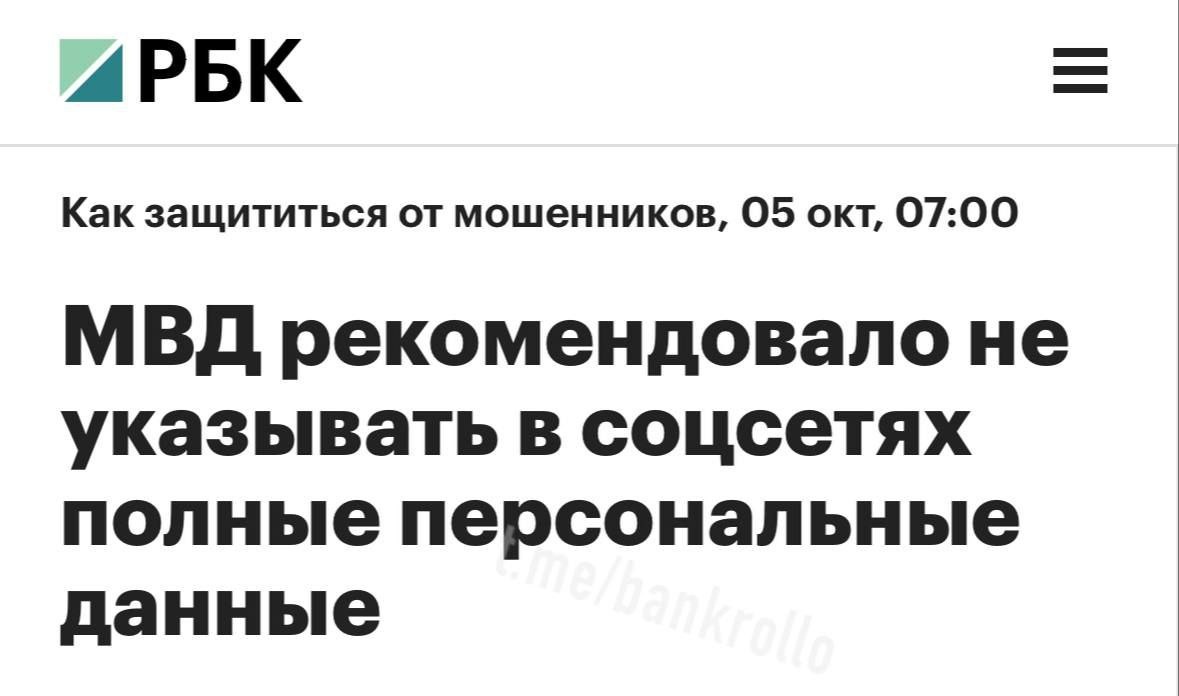 МВД рекомендует россиянам использовать фейковые аккаунты для защиты личных данных от мошенников. Министерство внутренних дел России советует гражданам сохранять анонимность в интернете, создавая фейковые аккаунты, чтобы избежать утечки личной информации и снизить риск стать жертвой мошенников. ────────── ⚡️Важные новости – без лишнего шума!⚡️ Подпишись на канал и получай только суть: оперативно, чётко, по делу! 👉 ИнфоСплетник | @infospletnik