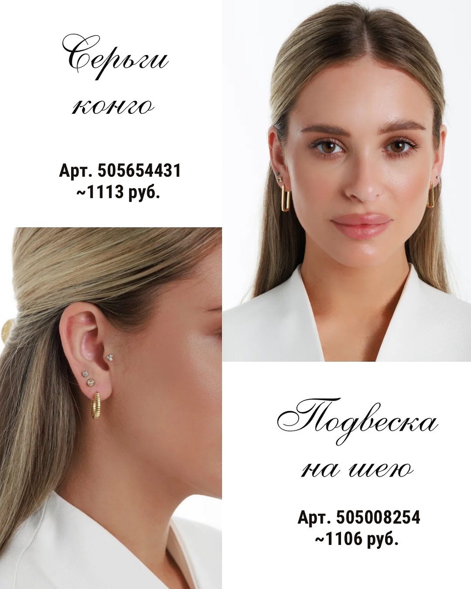 Лаконичные золотистые акценты — самый быстрый способ собрать образ «с иголочки», не перегружая его деталями. Такая бижутерия работает с базовым гардеробом круглый год: подчёркивает линию шеи, освежает лицо, добавляет мягкого блеска. Ниже — шесть удачных находок с фотографий: каждую разбираю по форме, посадке и роли в комплекте. Всё — строго по порядку и с артикулами. артикул: 505654431 • ориентировочная цена: 1113 руб. Как выглядят Небольшие кольца с ровным зеркальным покрытием и аккуратной застёжкой. Диаметр универсальный: заметны, но не спорят с мимикой и прической. Гладкая поверхность ловит свет и визуально «поднимает» скулы. С чем носить Совет стилиста Если уши проколоты в нескольких местах, оставьте конго в нижней дырочке, а выше поставьте крошечные гвоздики. Так получится аккуратная вертикаль без лишней тяжести. артикул: 505008254 • ориентировочная цена: 1106 руб. Как выглядит Миниатюрный подвес, ровный блеск металла, длина цепочки комфортная для вырезов «лодочка», «круглый» и