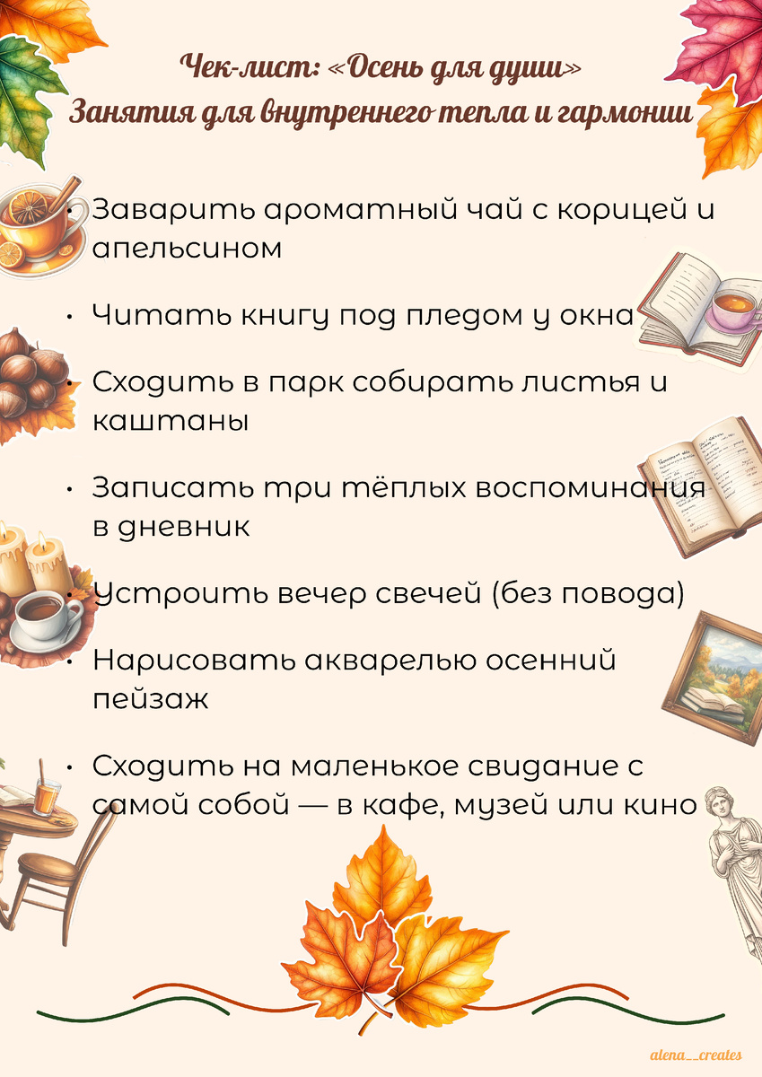 Каждый раз, когда я сажусь делать новый чек-лист, я думаю: зачем? Ведь жизнь нельзя уместить в пункты и галочки. Но потом понимаю — это не про задачи, а про внимание к себе. Этой осенью я создала два новых списка: