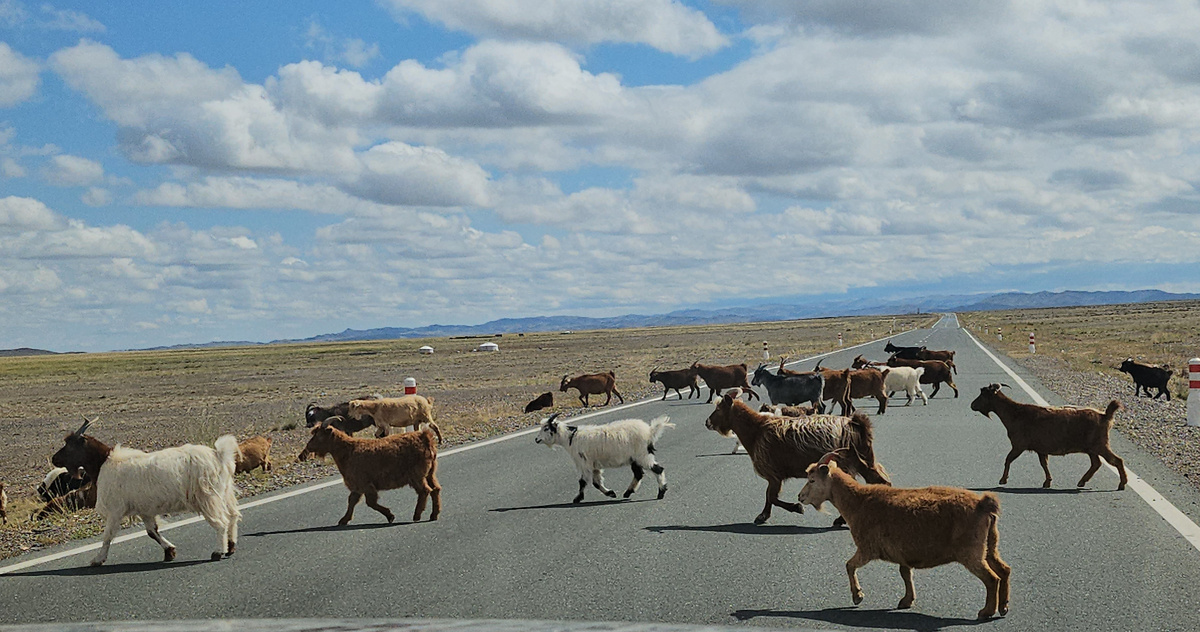 Скоростной режим за городом строгий — не более 80 км/ч. (штраф за превышение скорость на 10%,). Сначала это удивляет, ведь по идеальному асфальту с отличной видимостью ехать так медленно кажется странным. . После 50 километров такой темп становится невыносимым. Местные это тоже понимают и не всегда соблюдают правила. Камеры в Монголии стоят только на въезде в населённые пункты и в городах. За 300 километров пути мы не встретили ни одной камеры вне города. Главная опасность на дорогах — огромные стада животных, свободно разгуливающие вдоль трассы. Днём их видно издалека, но ночью нужно быть особенно осторожным. Животные могут появиться на дороге в любой момент. Несколько раз мы видели трупы животных у дороги, что подтверждает опасность, которую они представляют. Поэтому рекомендуем двигаться максимально аккуратно и не превышать скорость в тёмное время суток.