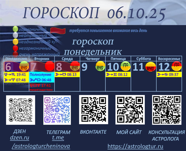 Сегодня Луна переходит в огненный знак Овна, принося с собой импульсивность и стремление действовать быстро и решительно. Однако одновременно с этим на нас уже влияет напряжённый аспект между Меркурием и Плутоном, который требует от нас глубокого анализа и осторожности в словах и решениях — подробнее об этом аспекте вы можете прочитать в моем обзоре на неделю. Первая половина дня выглядит относительно благоприятной. С самого утра Луна формирует гармоничные аспекты с Ураном и Плутоном, открывая возможности для неожиданных, но позитивных перемен и глубокой внутренней трансформации. Эти энергии помогают нам распознать скрытые ресурсы и использовать их для улучшения финансового положения или выстраивания более искренних и честных отношений. Однако во второй половине дня стоит проявить повышенную осторожность. Напряжённый аспект Меркурия с Плутоном побуждает к всестороннему анализу и изучению скрытых деталей, но одновременно может усилить подозрительность и привести к конфликтам, если мы по