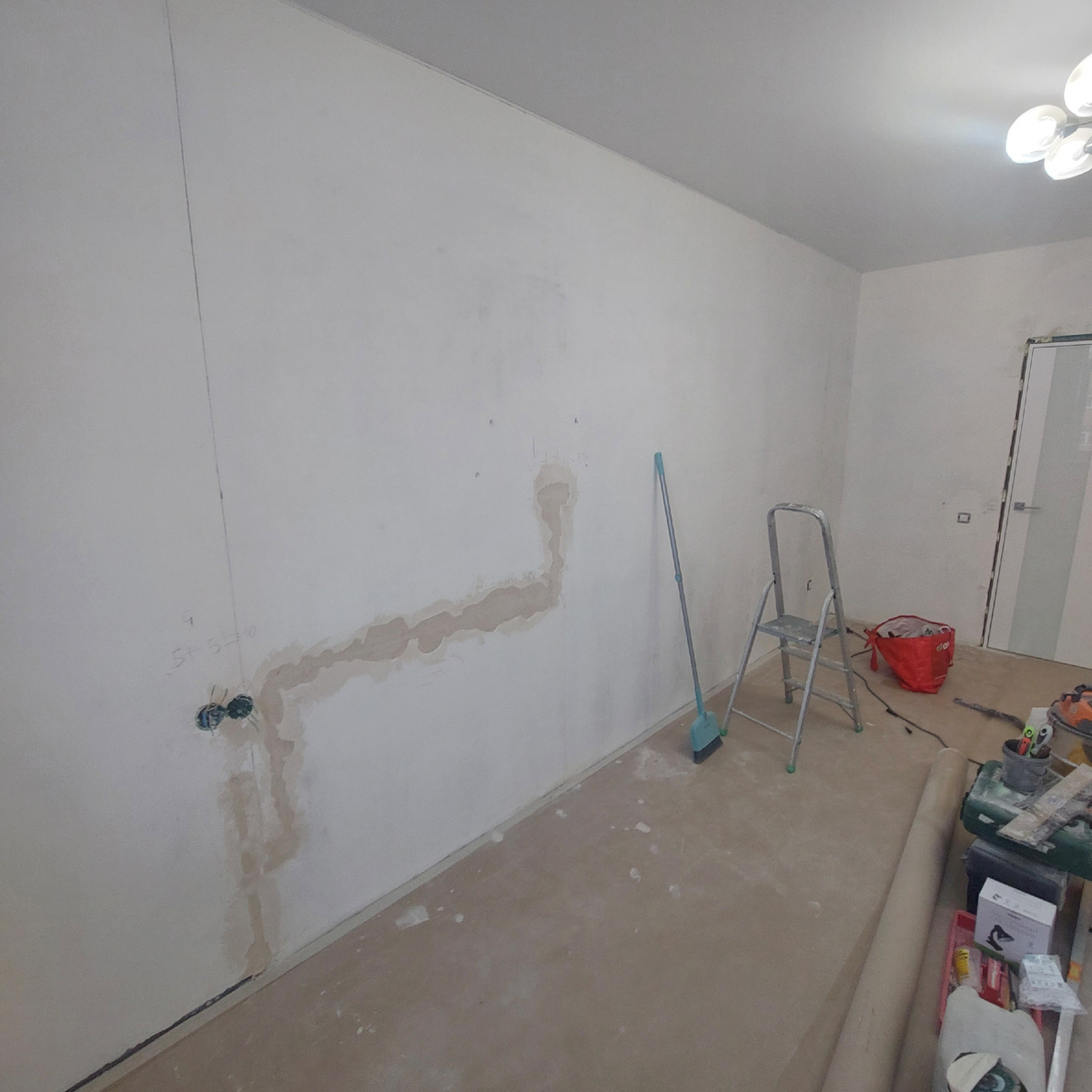 Обычно во всех моих ремонтах идёт сначала поклейка обоев ,а потом натяжной потолок. Но потом я получал гневные комментарии от читателей экспертов,что так только испортят обои когда будут сверлить направляющие для натяжного потолка. Но если делать натяжной потолок, а потом обои ,то эксперты говорят, что так можно легко порезать и испортить потолок при поклейке и подрезке обоев. Так что же мне делать? Как бы я не делал ,то я уже обречён на критику 👉 ЧТО ТАК ДЕЛАТЬ НЕЛЬЗЯ. Гнать меня ирода в шею, не платить денег и всё такое. Но делать что то надо. Поэтому сейчас я взял в работу квартиру,где в одной комнате поклею обои и две фрески на всю стену ,а после натяжной потолок. В другой комнате/коридор будет натяжной потолок и после него поклею обои. А эксперты теперь пусть дерутся между собой. Снять в коридоре потолок не получится,если что. Имеем такую вот комнату 👇👇 Делаю лёгкую косметику Получается вот так На стенах по бокам поклеены под заказ обои длинной в три метра и высотой 2м60с