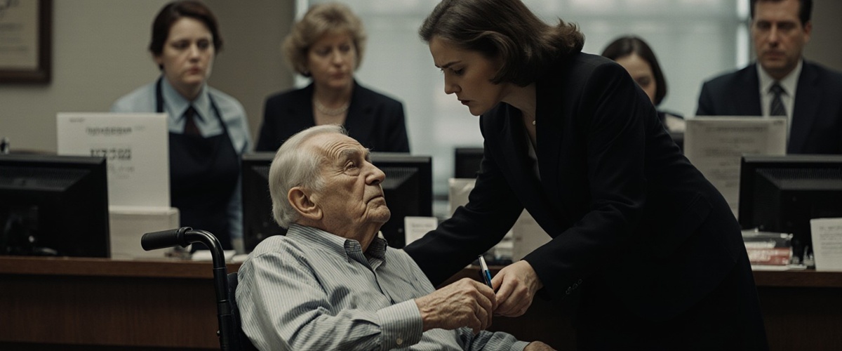«Дядя, вы меня слышите? Вам нужно подписать», — говорила она, двигая его рукой по документу. «Подпишите, чтобы не доставлять мне больше головной боли».