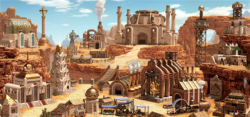По лору новая фракция располагается в землях Терра Нова, что на континенте Джадам, в окрестностях засушливого региона Ревейдж Роуминг (это там, где по Might and Magic VIII затопило логово минотавров). Фабрика представляет из себя смесь Кузницы, фракции Чародей из Heroes 2, фильмов категории «вестерн» и щепотки кинофильма «Дрожь Земли».