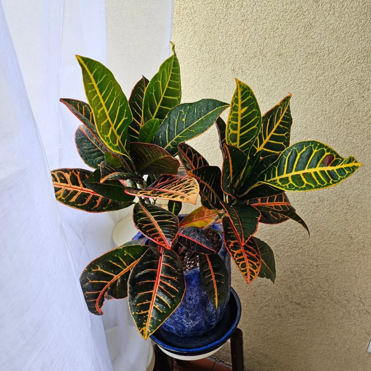🌿Кротон (кодиеум) популярен благодаря своей яркой листве – от нежно-зеленых оттенков до насыщенных янтарных, бордовых и даже почти черных. Листья могут быть узкими, как стрелы, или широкими и волнистыми (все зависит от сорта), создавая эффект художественного шедевра. Что делает кротон особенным? Он кажется живым произведением искусства, яркой вспышкой цвета. Можно комбинировать разные сорта, чтобы создать тропический рай дома.