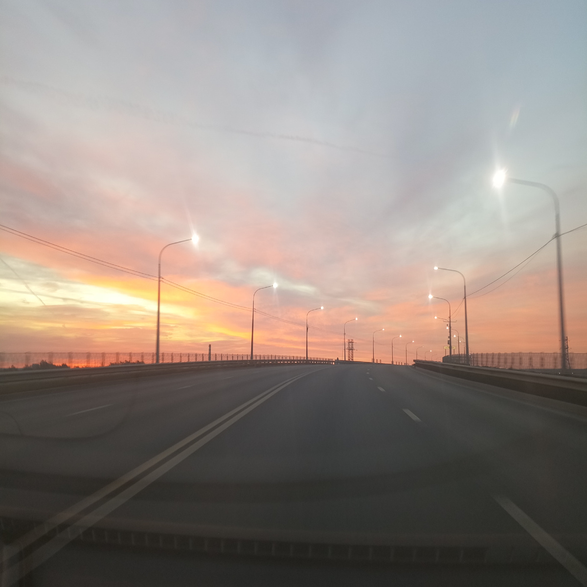 Время шесть часов, вот такой красочный восход мы увидели, проезжая по дороге к рынку.