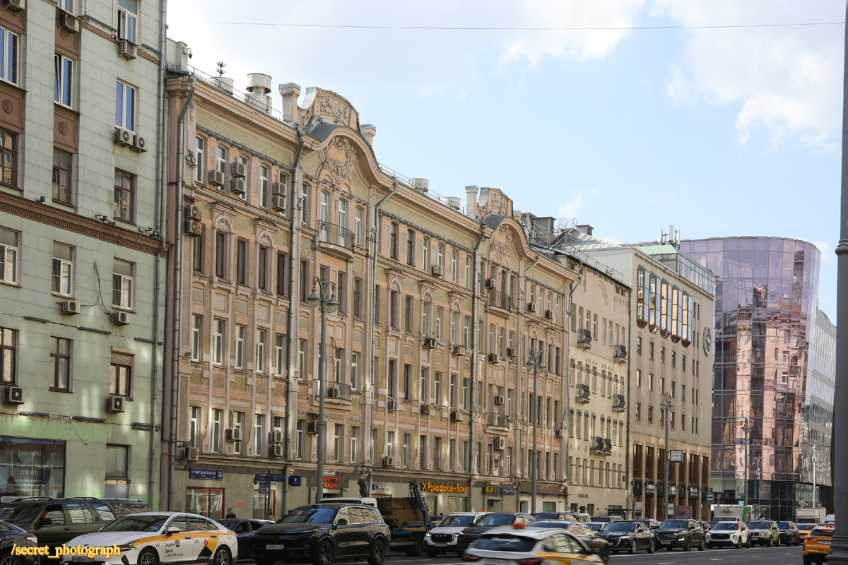Представителям купеческой фамилии Аристовых в этом районе принадлежало как минимум шесть существующих доныне построек. Это и особняк на 3-й Тверской-Ямской, и доходные дома, выстроенные в конце девятнадцатого – начале двадцатого веков. Но самый красивый из них, это… Семья эта ведет свою летопись от крестьянина Василия Ассоновича из сельца Аристово Боровского уезда Калужской губернии. Перебравшись в Москву, он в 1850-х вступил в третью купеческую гильдию, занимался торговлей лесом и лесоматериалами. Имел трех сыновей от двух браков: Петра, Дмитрия и Андрея. Старший его сын, Петр Васильевич, превзошел отца в делах, сделавшись к концу девятнадцатого столетия первогильдейским купцом. И вот как раз сегодняшний мой архитектурный герой, пятиэтажный доходный дом в стиле модерн был выстроен уже для его сына Сергея Петровича Аристова, также купца первой гильдии, члена Торгового дома «Аристова потомки». Автором проекта стал архитектор Павел Александрович Заруцкий, многие работы которого я показыв
