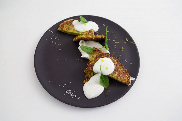 Подробный рецепт оладий, в котором тертые кабачки скрепляются яйцом и вязкой полентой. Кабачки 300 г Куриное яйцо 1 штука Полента 50 г Пшеничная мука 30 г Лимон 1 штука Соль по вкусу 1.Кабачок натереть на крупной терке и посолить. Спустя 5 минут отжать сок при помощи нетканых полотенец. 2.Смешать вилкой кабачок, яйцо, муку, поленту и цедру 1 лимона. 3.Сформировать и пожарить оладьи на растительном масле с обеих сторон. Подавать со сметаной или сливочным сыром.