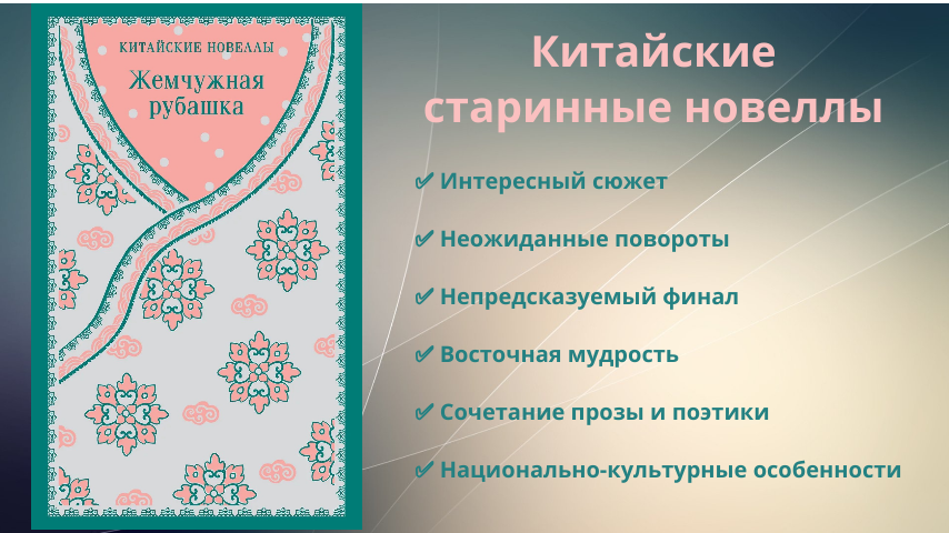 Сегодня я расскажу вам об очень необычном рассказе, точнее, китайской новелле "Жемчужная рубашка" из одноименного сборника китайских новелл.