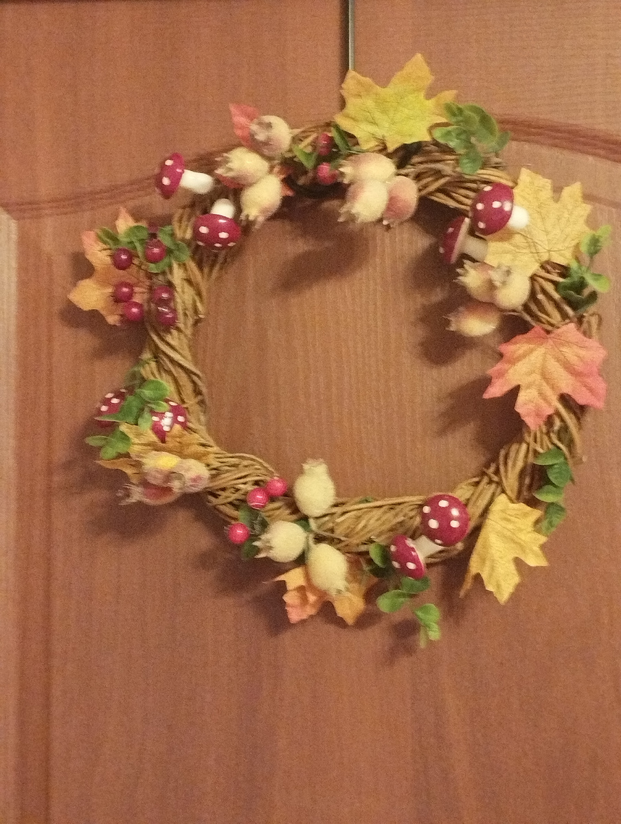 Всегда стараюсь украшать двери. На двери в спальне венок, который делала сама из веток ивы. Украшения для венка преимущественно из Фикс-прайса. Только литьстья клена заказывала на Вайлдберриз.