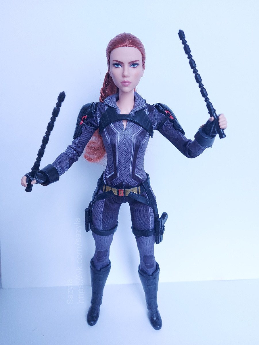 Сейчас эта линейка у Маттел называется “Вдохновляющие женщины”. Но мои куклы выпускались до этого, так что называть их так не совсем корректно. Надо признать, что за десятилетия создания фешн кукол Маттел поднаторел в дизайне молдов. Их портретные куклы получаются достаточно узнаваемыми. Тому же диснейстору с их портретками по лайв экшн ремейкам еще учится и учится. До сих пор вспоминаю все шутки про кукол “Красавица и Чудовище” с Эммой Уотсон. Я не особо большой фанат певцов и актеров, так что у меня в коллекции, в основном, именно персонажи, а не люди, которые их изображали. И, поскольку, я люблю супергероев, две из них как раз из той степи. Я люблю Мстителей, моя полка с фигурами очень красноречива по этому поводу. Но вот Наташа Романофф (в исполнении Скарлетт Йоханссон) явно не самый популярный персонаж. Найти её в виде фигурки не так-то просто. (Такой же проблемой, кстати, Халк страдает. Вообще не вижу связи) Так что, когда вышел фильм, а к нему ещё и куклы, я сразу решила, что