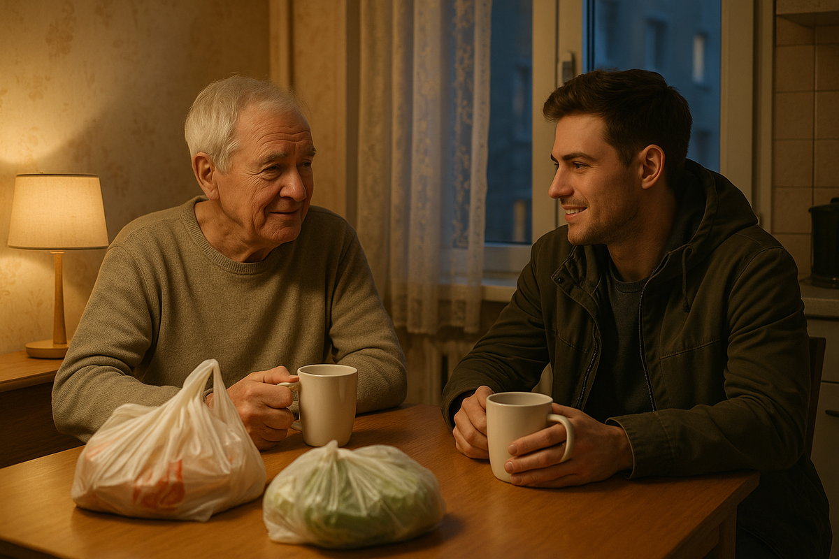 Прошёл год. Денис вырос до мидл-разработчика, зарплата выросла втрое. Он снимал уже не комнату, а однушку. Купил нормальную одежду, ноутбук новый. Но продолжал приходить ко мне — теперь просто так, поговорить.