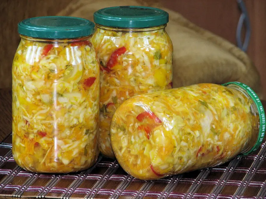 Капустный салат на зиму - острый, пикантный необычный. Можно с картошечкой или в супы