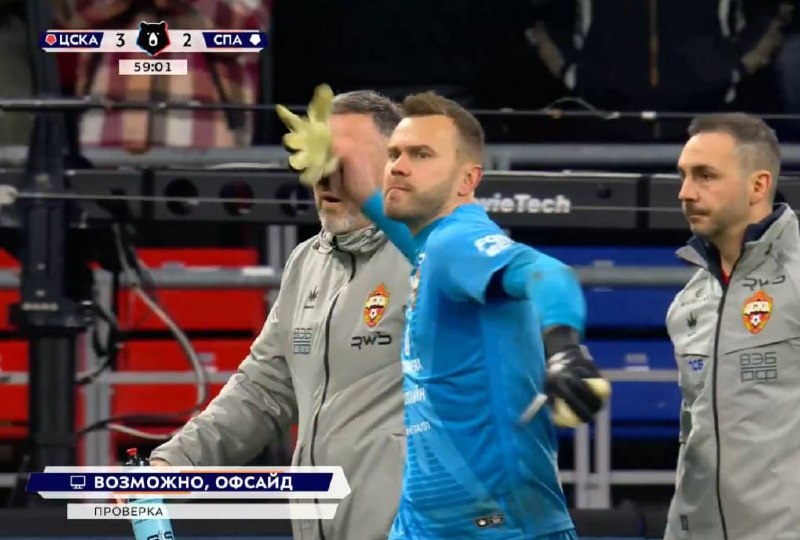 Игорь Владимирович словил повреждение колена после второго гола Спартака и ушел с поля, вышвырнув перчатки.