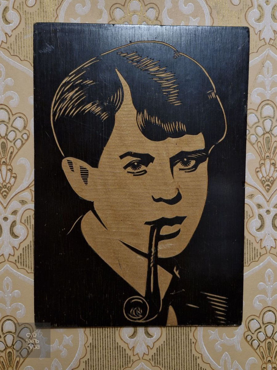 Пожалуй, это самое народное изображение поэта. Кто не мог купить, вырезал сам, благо трафареты ходили по рукам. В основе лежит фотография 1919 года. Ещё встречается чернолаковая резьба по гравюре Константинова и Есенин с берёзой. (Этот и другие есенинские артефакты я сфотографировала в рязанском Музее СССР, большое спасибо основателю Светлане Маковой).