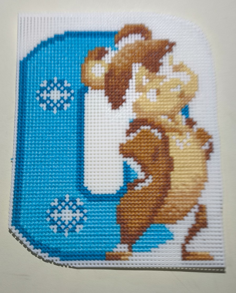 Думала, что самого озорника будет трудно вышивать, но, несмотря на мешанину крестиков, он быстро подрос на тысячу крестиков.